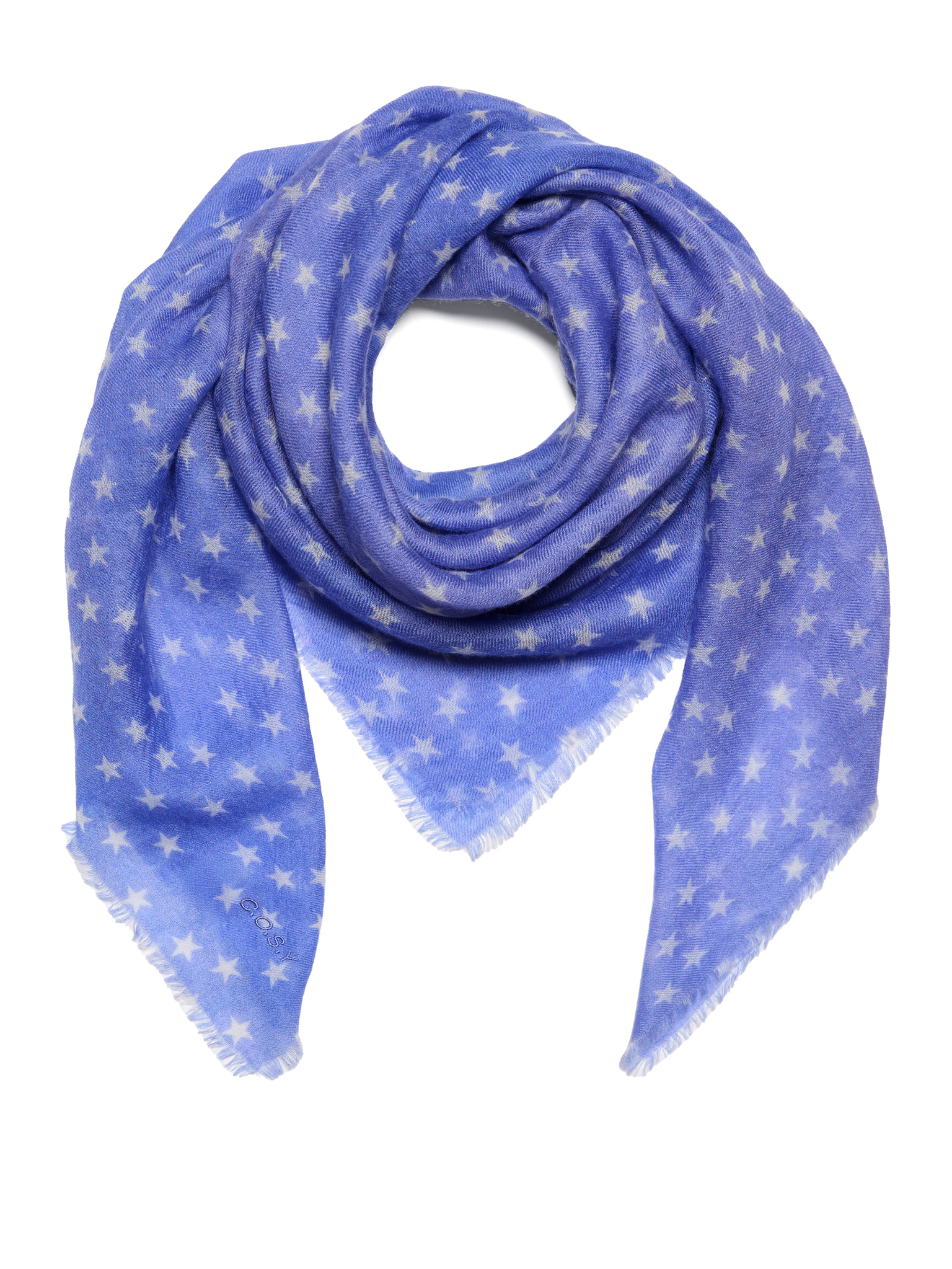 Cosy 100% cashmere Stars Persian Jewel. De ultieme zachte sjaal van 100% hoge kwaliteit geweven cashmere uit Inner-Mongolië met een never out of style sterren printje op een helder blauwe achtergrond....Lees meer