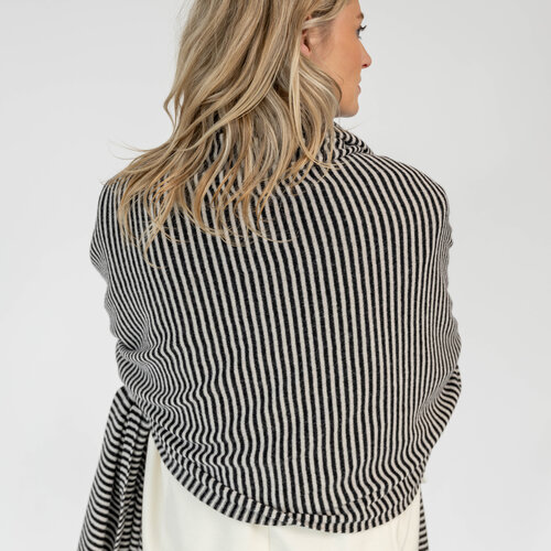 Sjaal Cosy Chic Stripes Sjaals. Cosy staat voor zacht en warm en dat is deze sjaal dan ook precies. De sjaal is zacht door dat beetje cashmere en warm door de merino wol. Een heerlijke comfortabele sjaal die verslavend lekker is en door het grote formaat ook fijn als omslagdoek te dragen is. Deze sjaal valt als een chique sjaal die perfect gaat naar een zakelijke meeting, een diner, maar is ook een uitkomst op de bank en achter je PC. Deze sjaal is zowel in het voor- en najaar als in de winter een topsjaal. Daarbij is de sjaal heerlijk ruim van formaat.